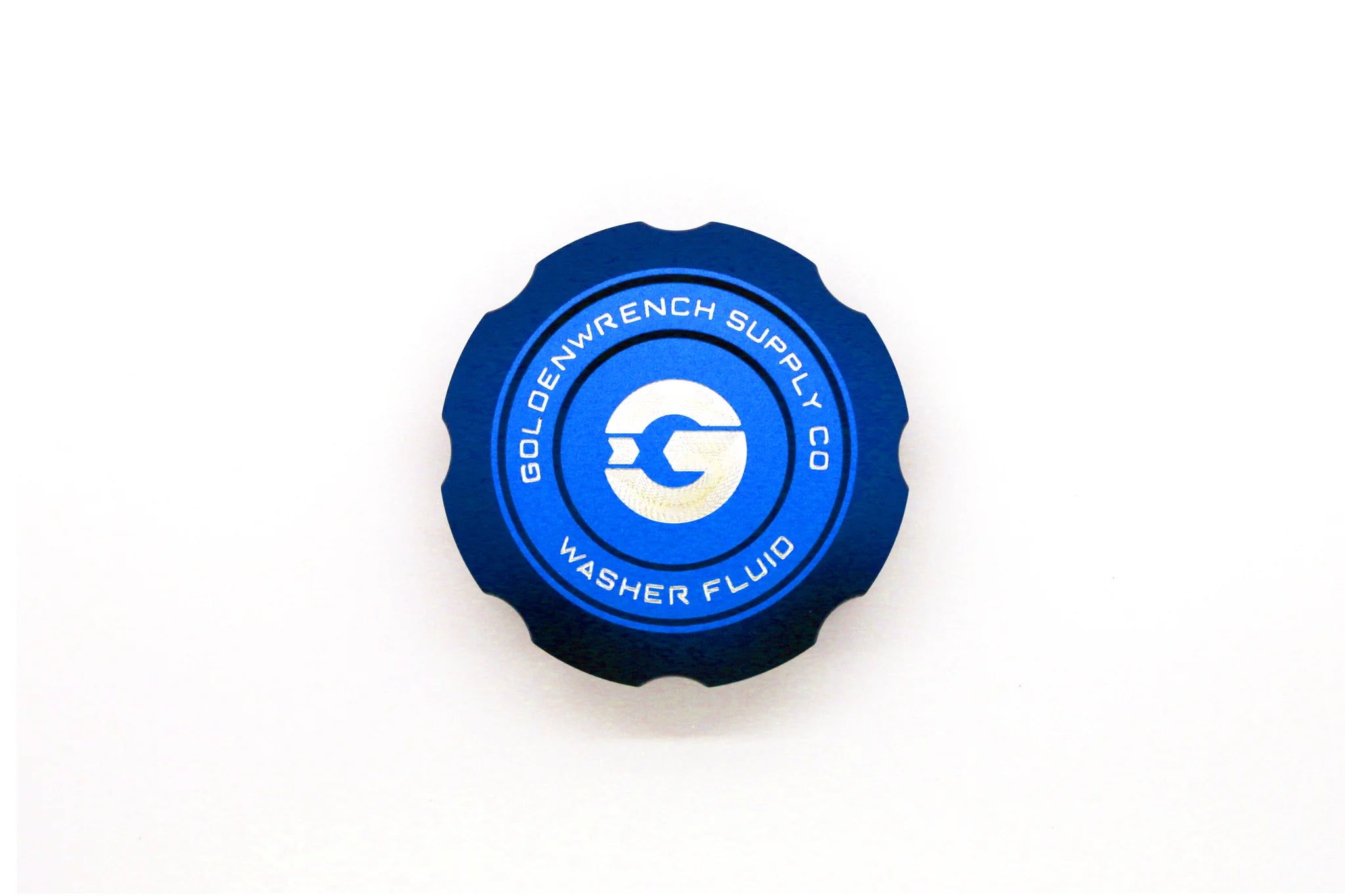 Upgrade the plain plastic factory cap with the BLACKLINE Performance Washer Fluid Cap. Each cap is CNC formed from T6 aluminum and anodized in your choice of three colors: Anthracite Grey, Blue, or Red. Logos and detailing are completed using GoldenWrench’s precision 3D milling process, machined directly into each cap for a crisp, premium finish. The BLACKLINE Performance Billet Washer Fluid Cap fits most BMW F Series models, please see the application guide below.