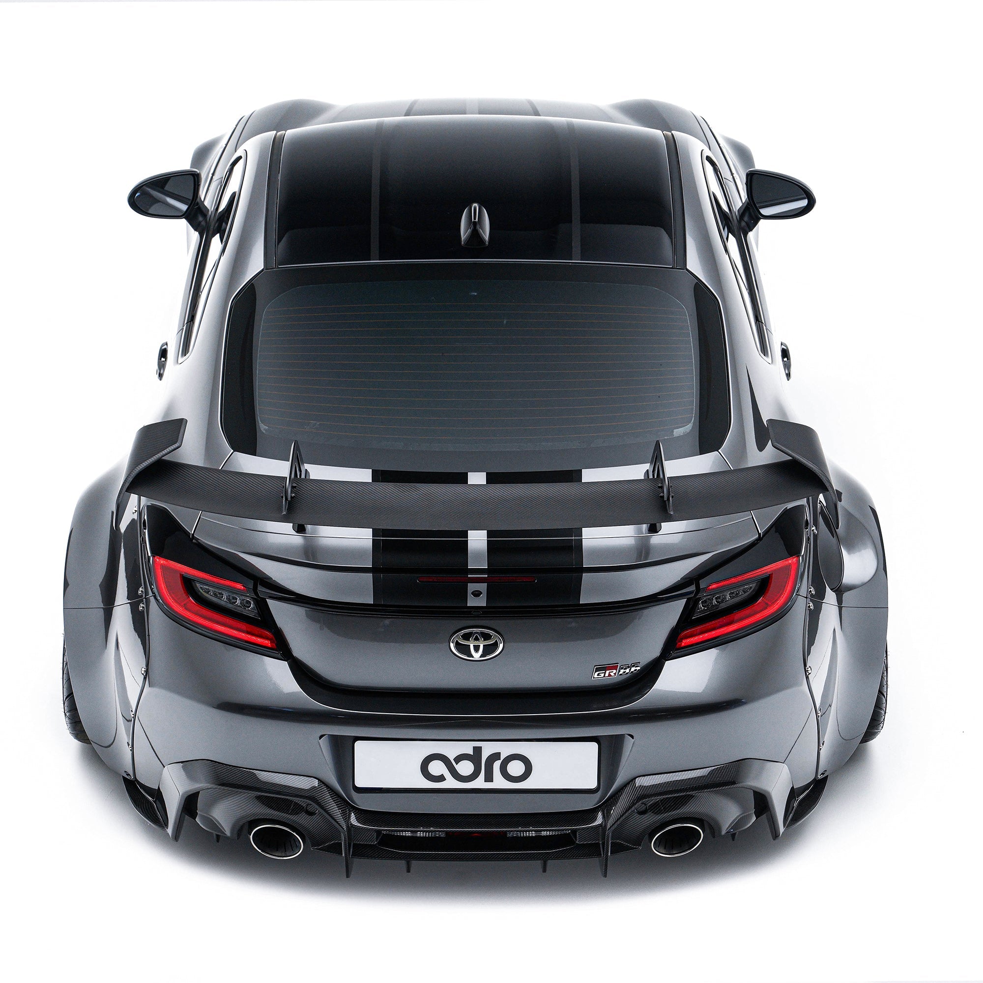Aerodynamic testing for ADRO’s carbon fiber body kit shows a dramatic increase in downforce for the custom Toyota GR86 / BRZ to improve the cornering performance of the package.