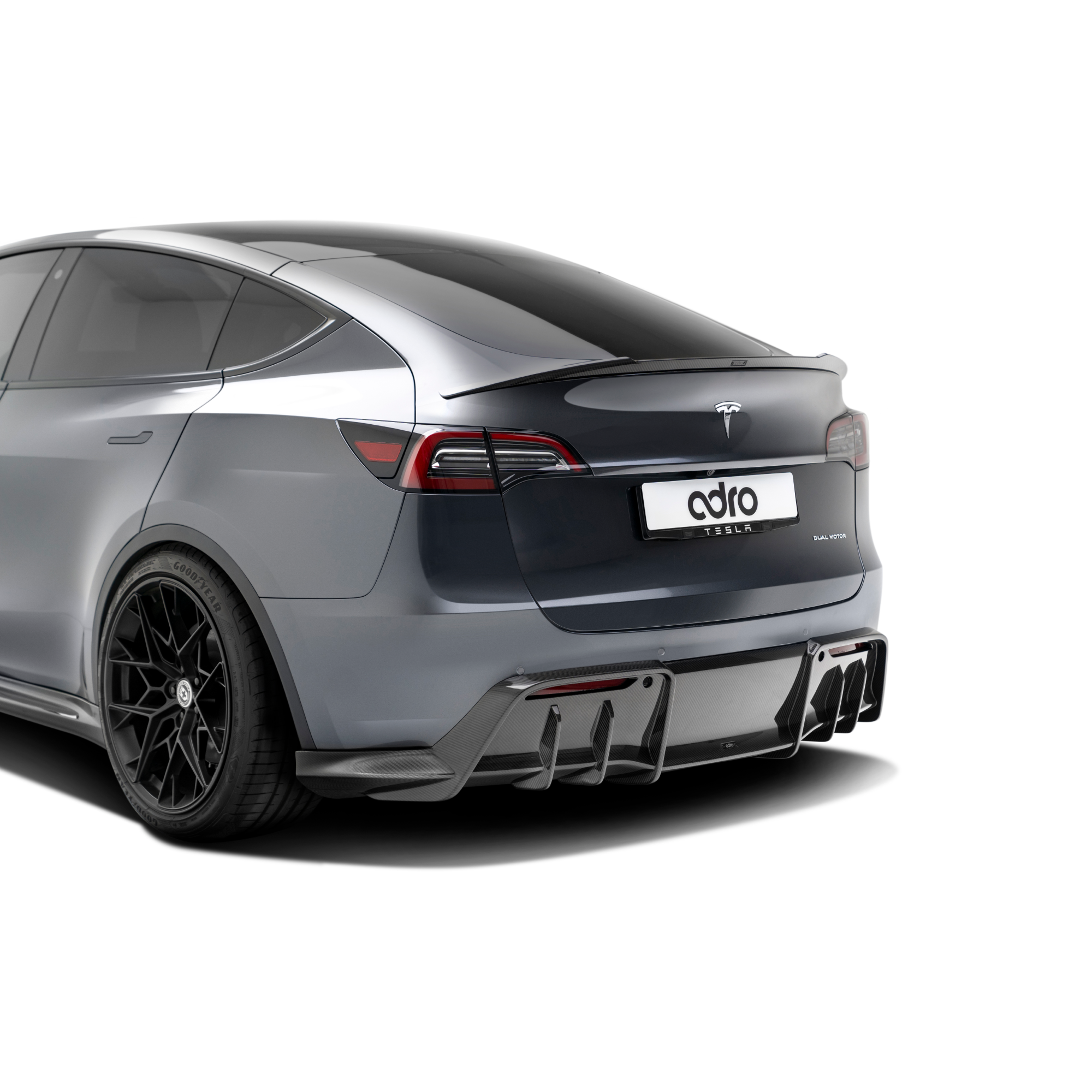 The ADRO carbon fiber rear diffuser was handcrafted using only the highest quality real carbon fiber to ensure that it's the lightest and strongest diffuser that you can get for the Model Y. It's also engineered to decrease drag and increase airflow underneath the car, allowing you to potentially extend the range of your Model Y. You can also pair it with the rest of ADRO's full carbon-fiber Model Y body kit to get the most exotic looking Model Y on the road and to be the envy of your friends.
